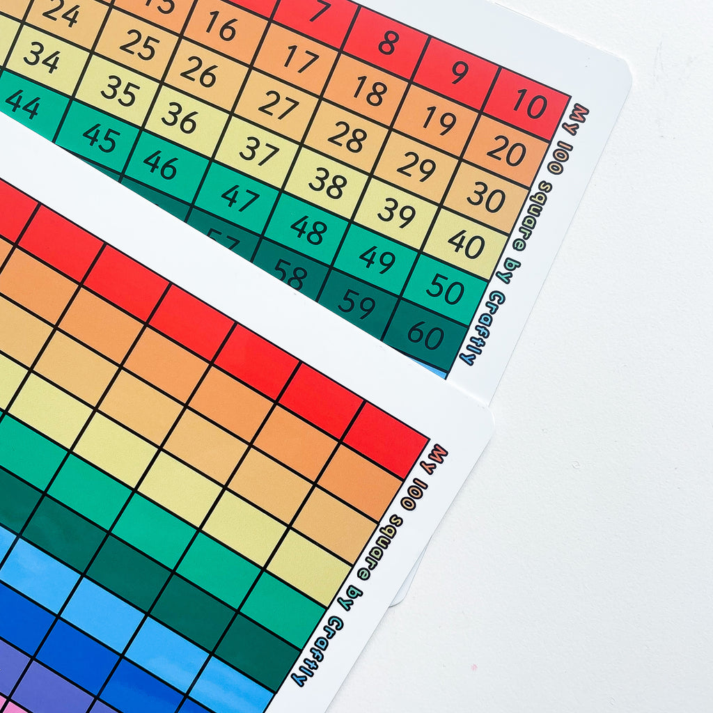 This brightly coloured 100 number square is used to help teach numbers, place value easier for children in KS1 (aged 4-6).