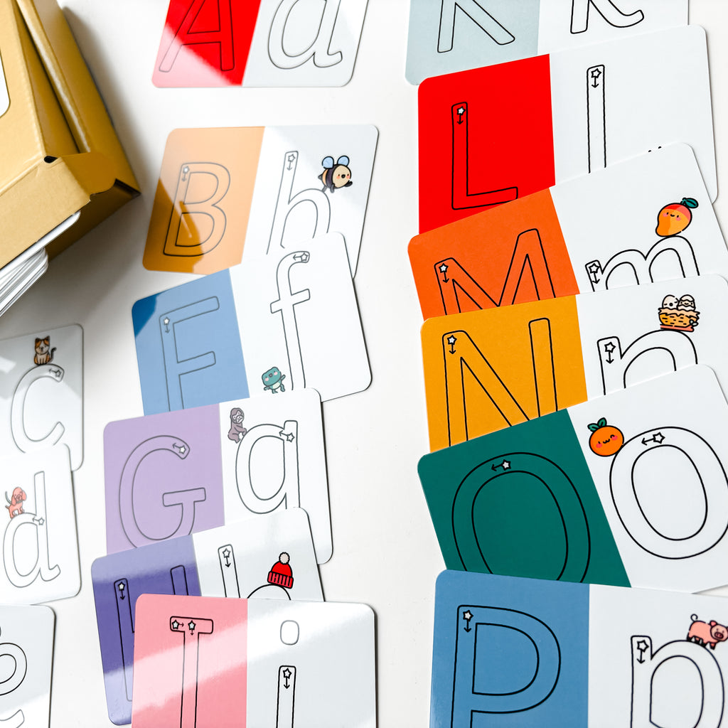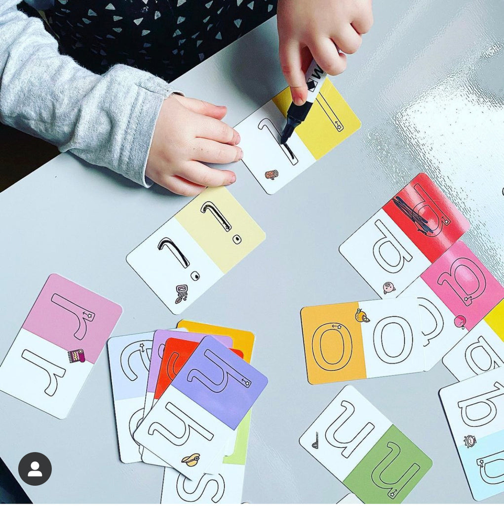 These brightly coloured and fun cards have been designed with preschoolers and reception children in mind. Each card has an illustration with the same sound of the letter, to help children understand the relation between sound and letter. Practice tracing inside of the letter with a whiteboard pen for pen control skills.