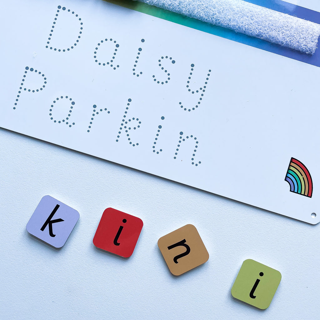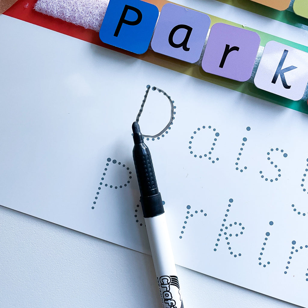 Trace the dots, trace inside the lines and choose whether to spell with letter tokens, or practice freehand writing.
