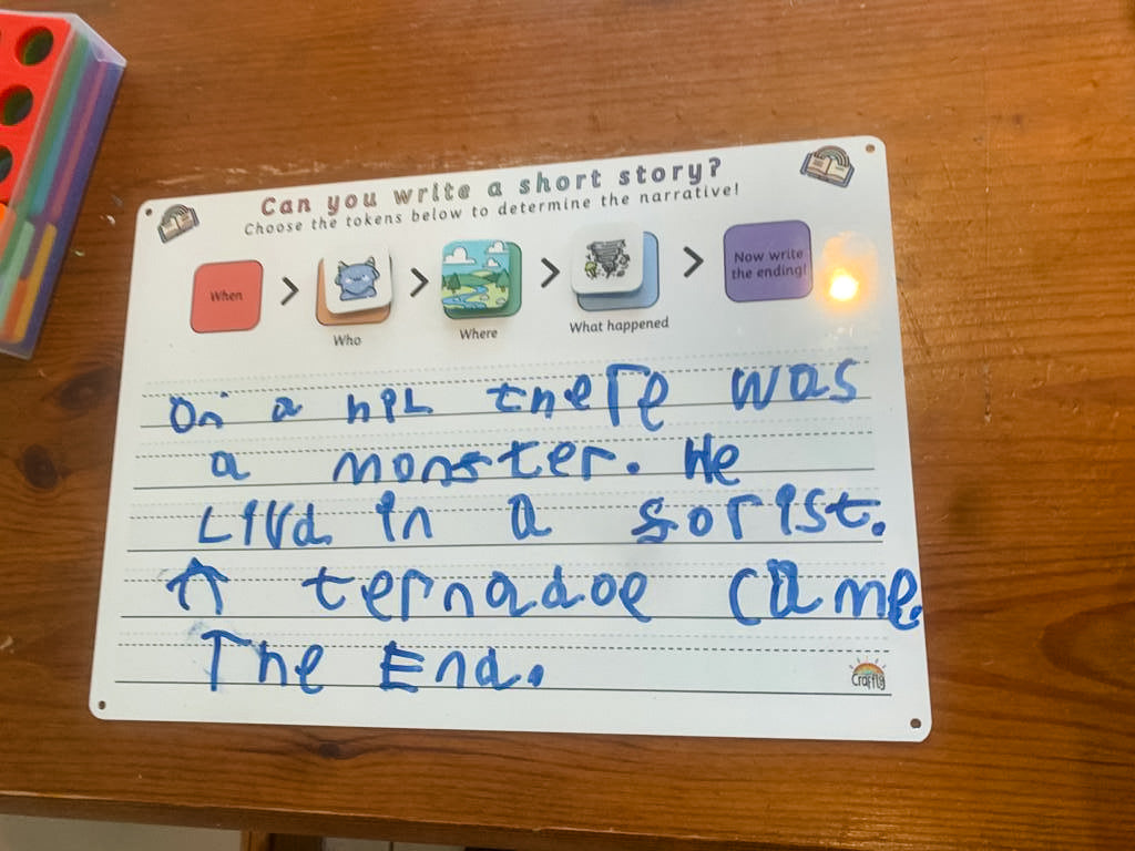 This was the board I was looking forward to the most out of the batch that I ordered, and it didn't disappoint. It was the first one my son pulled out to use and he instantly got to work. I bought a range of items to support the school work he was being set during lockdown and try to make it a bit more fun for him. His first story earnt him a star peg from his teacher. Great at giving them a chance to use their imagination and practice their writing. 5 stars! X