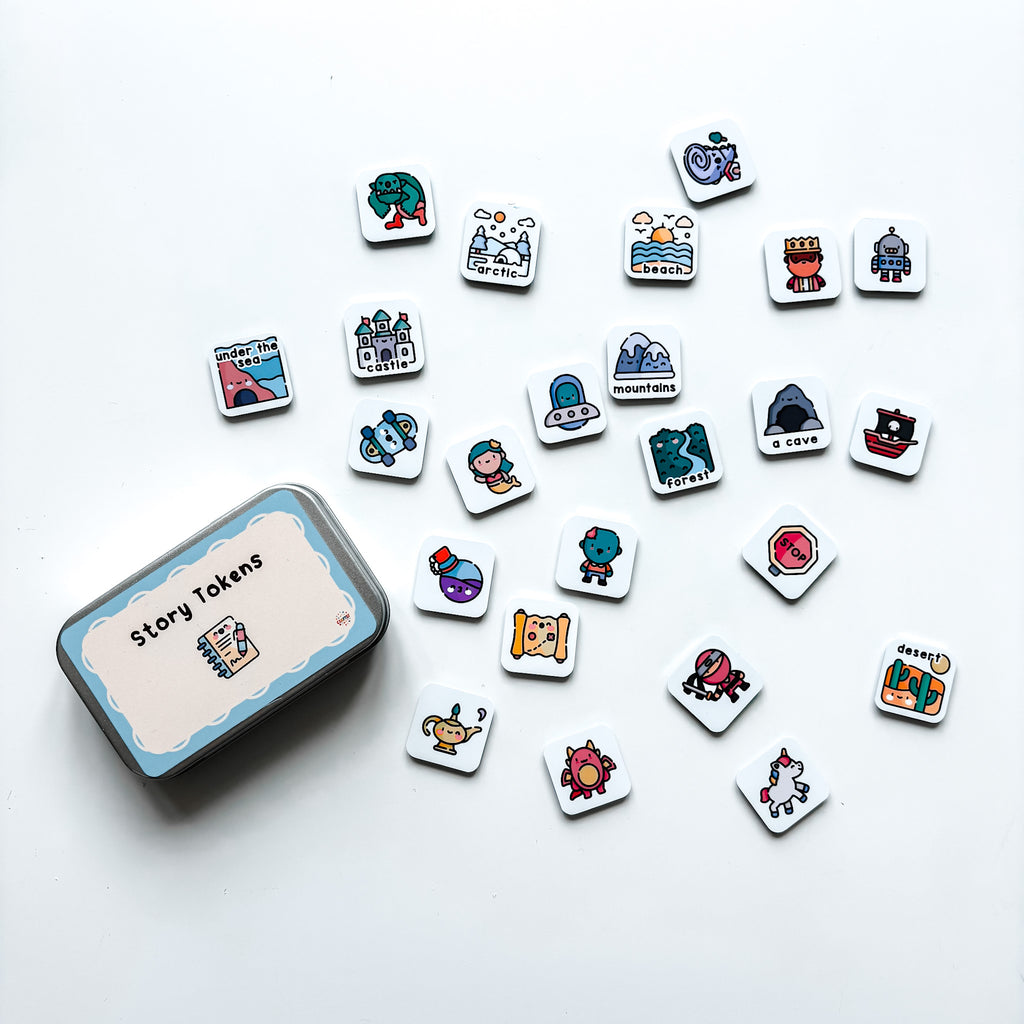 • Create stories independently, combining tokens from different themes to invent new adventures.