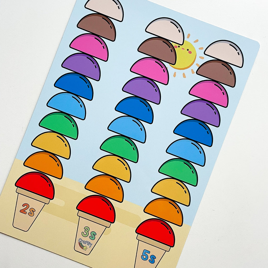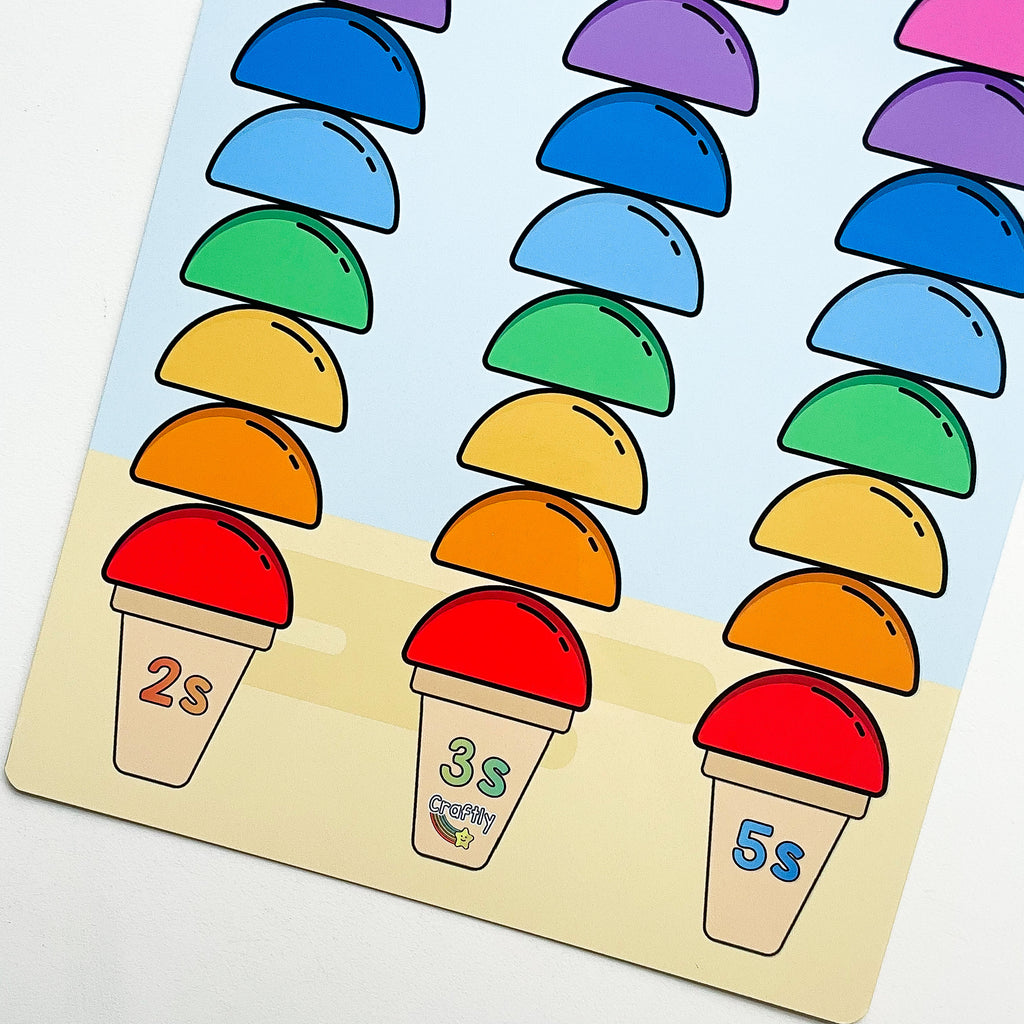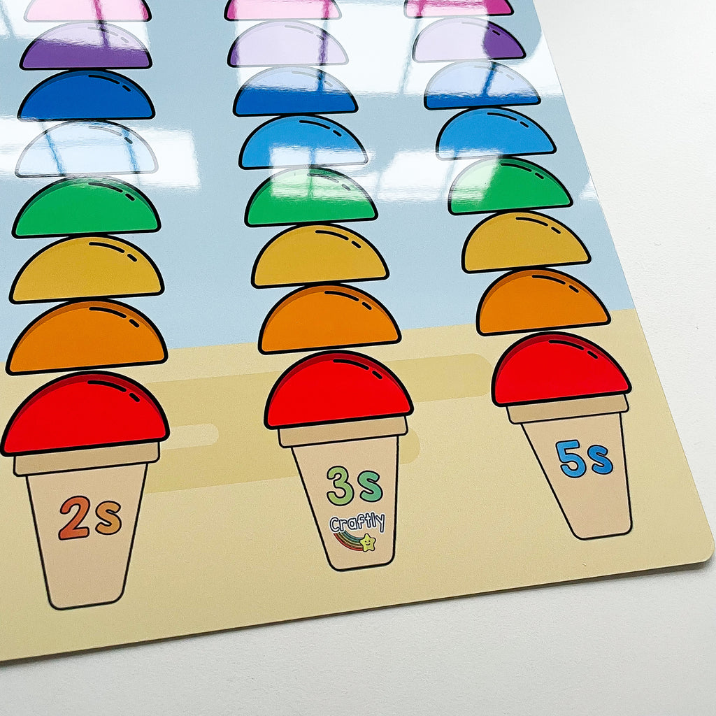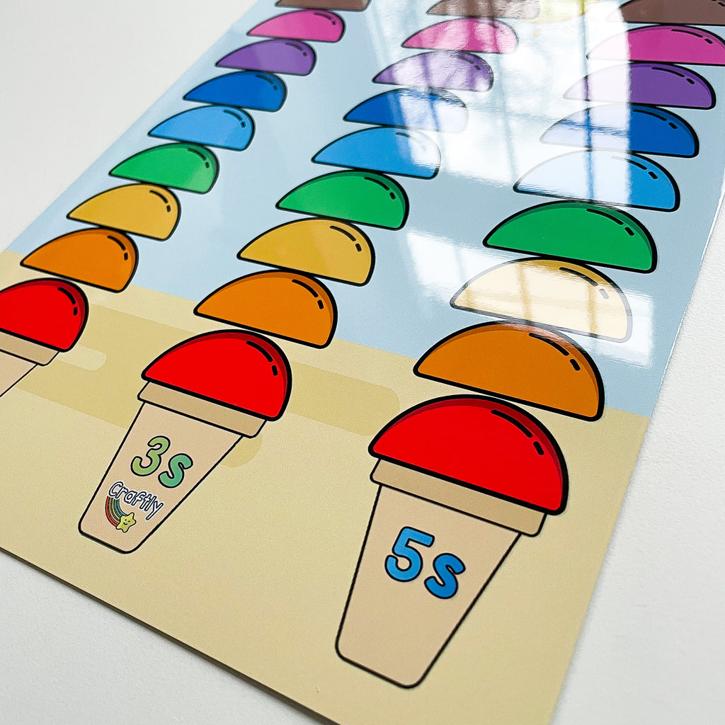 Skip counting is used as the first introduction to times tables. Use these ice cream scoops to count in 2s, 3s and 5s. Or you can choose the blank option to use it for any times table. You can also use for any number pattern and leave blank spaces for your child to fill.