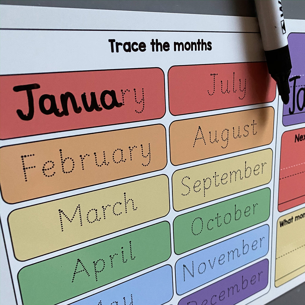 In KS1, children learn to trace the days and months to help them practise learning to write the date.