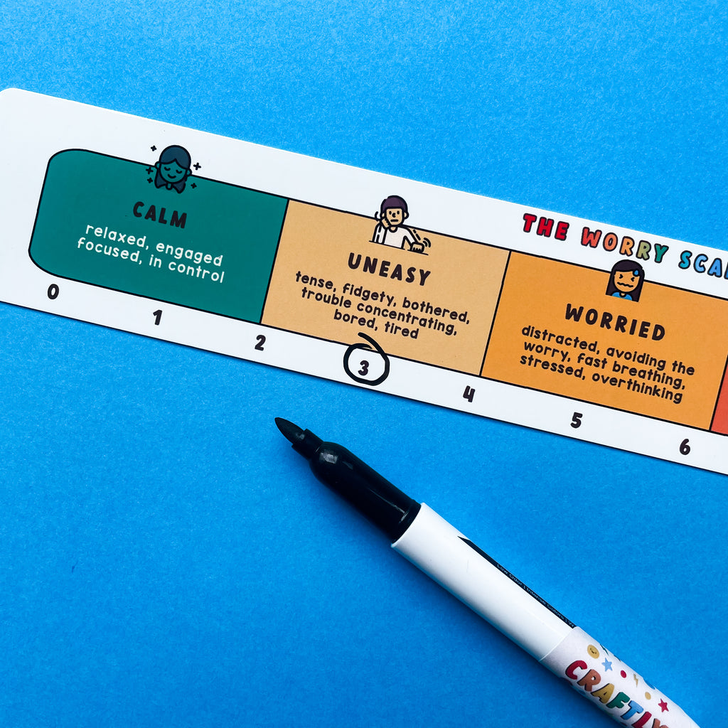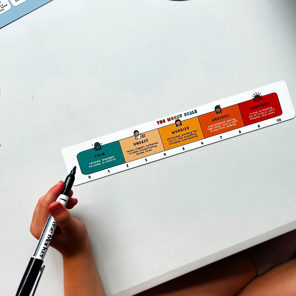 Introducing our scale for anxiety, the reusable scale is designed to help parents, caregivers and therapists understand and manage a child's anxiety effectively. This innovative tool provides a simple, engaging way for children to express their feelings, while giving valuable insights into their child's emotional well-being. Easy to use and environmentally friendly, the scale is an essential resource for fostering emotional health and open communication within the family.