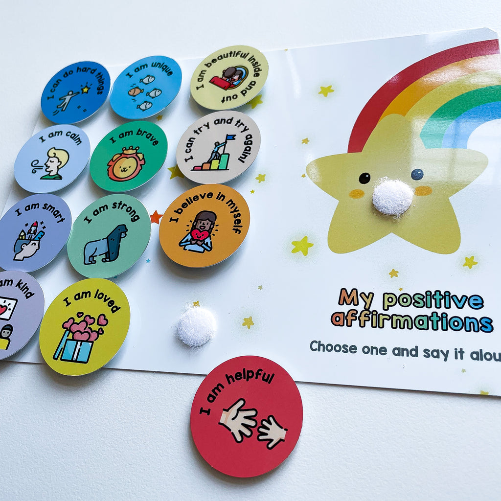 Positive affirmations for children are a great tool for self regulation and support. It encourage a more positive mindset and overall happier well being, especially during emotional situations.