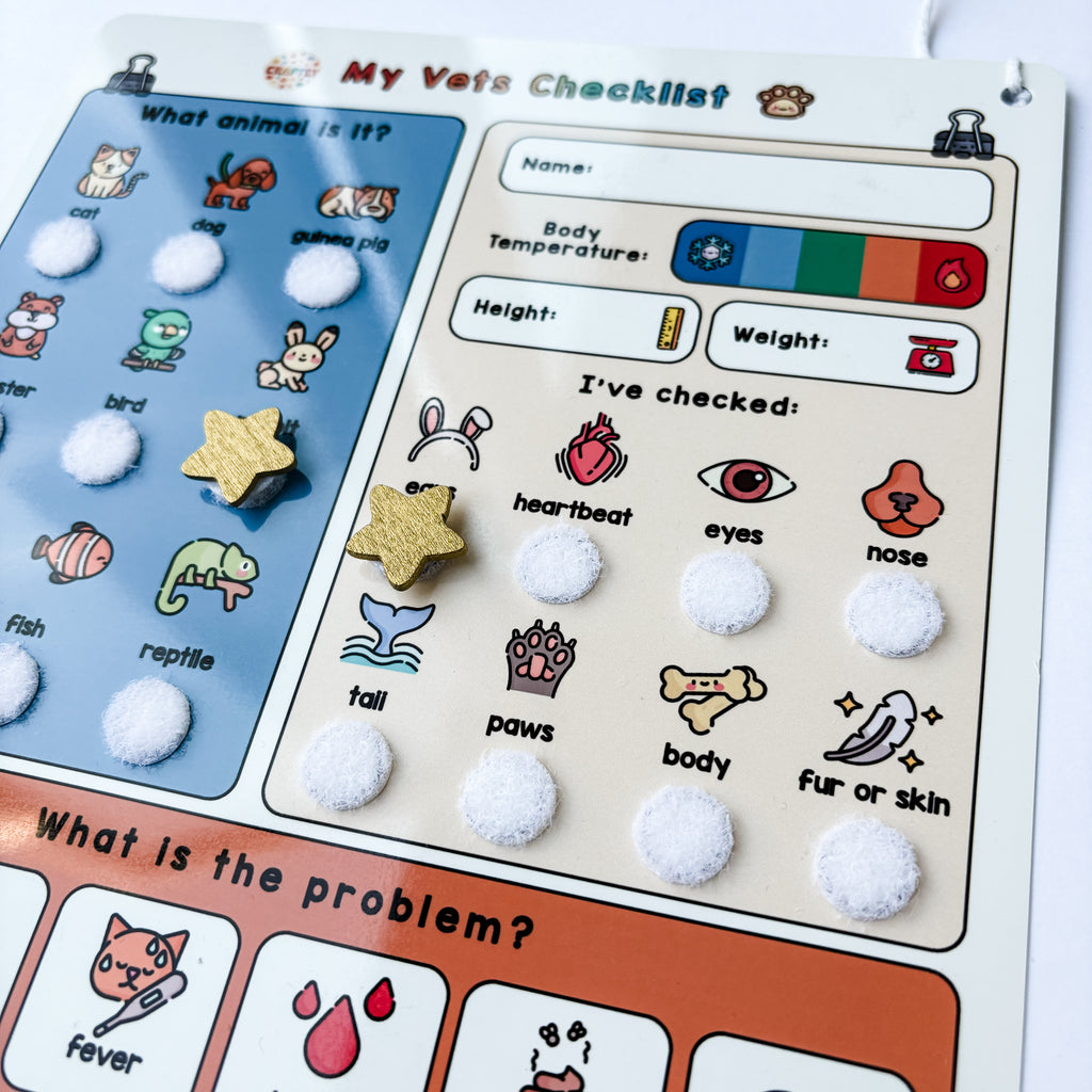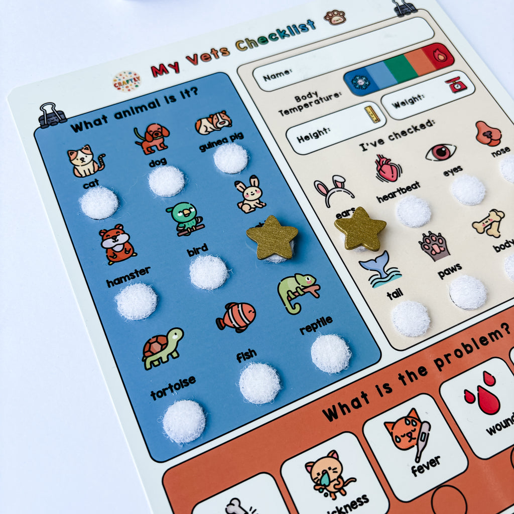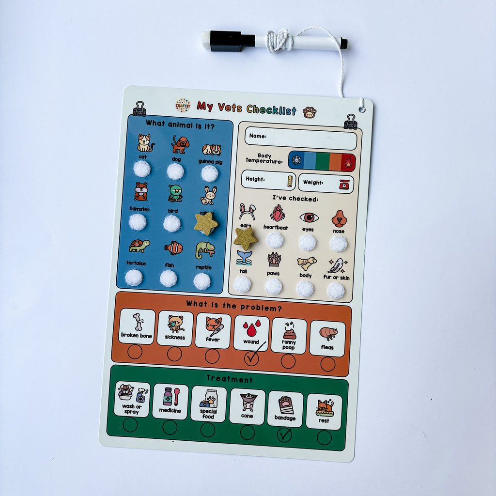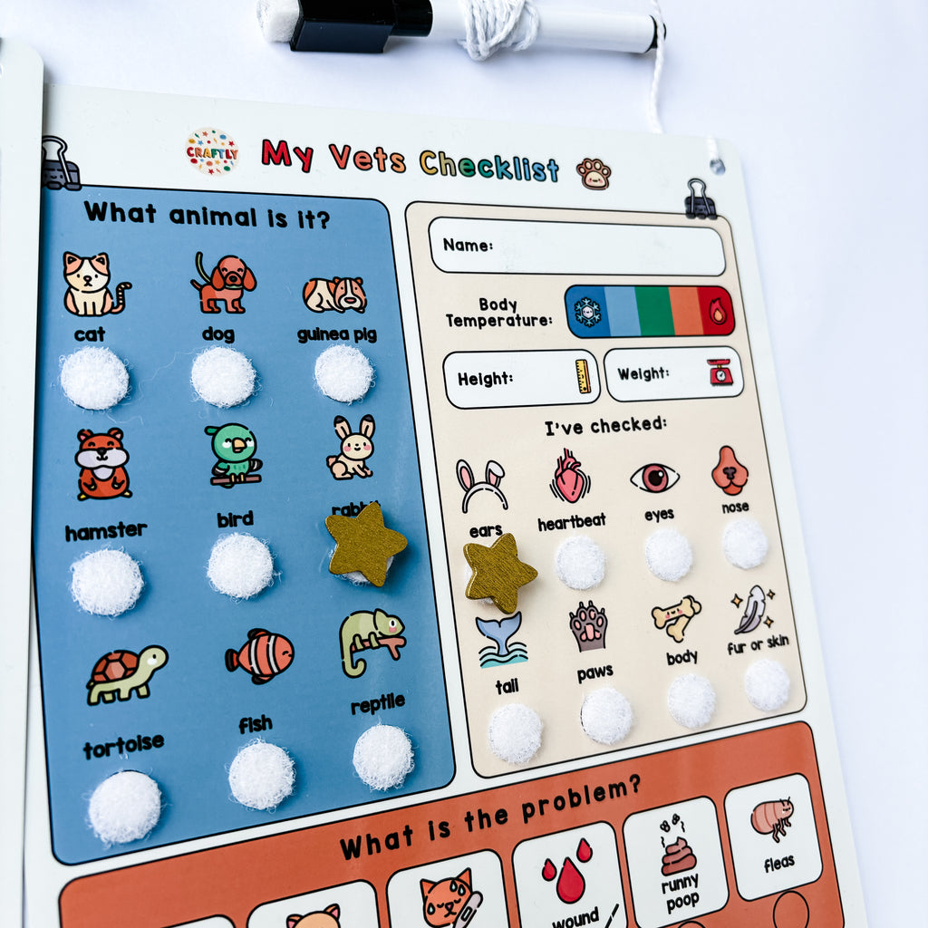 Unleash your child's imagination with our Doctor & Vet Checklist for Kids, the perfect toy for toddlers and preschoolers who love to play pretend! Designed to inspire creative role play, this interactive checklist helps little ones take on the role of a doctor or veterinarian, helping animals and people feel better in their own fun, hands-on way.