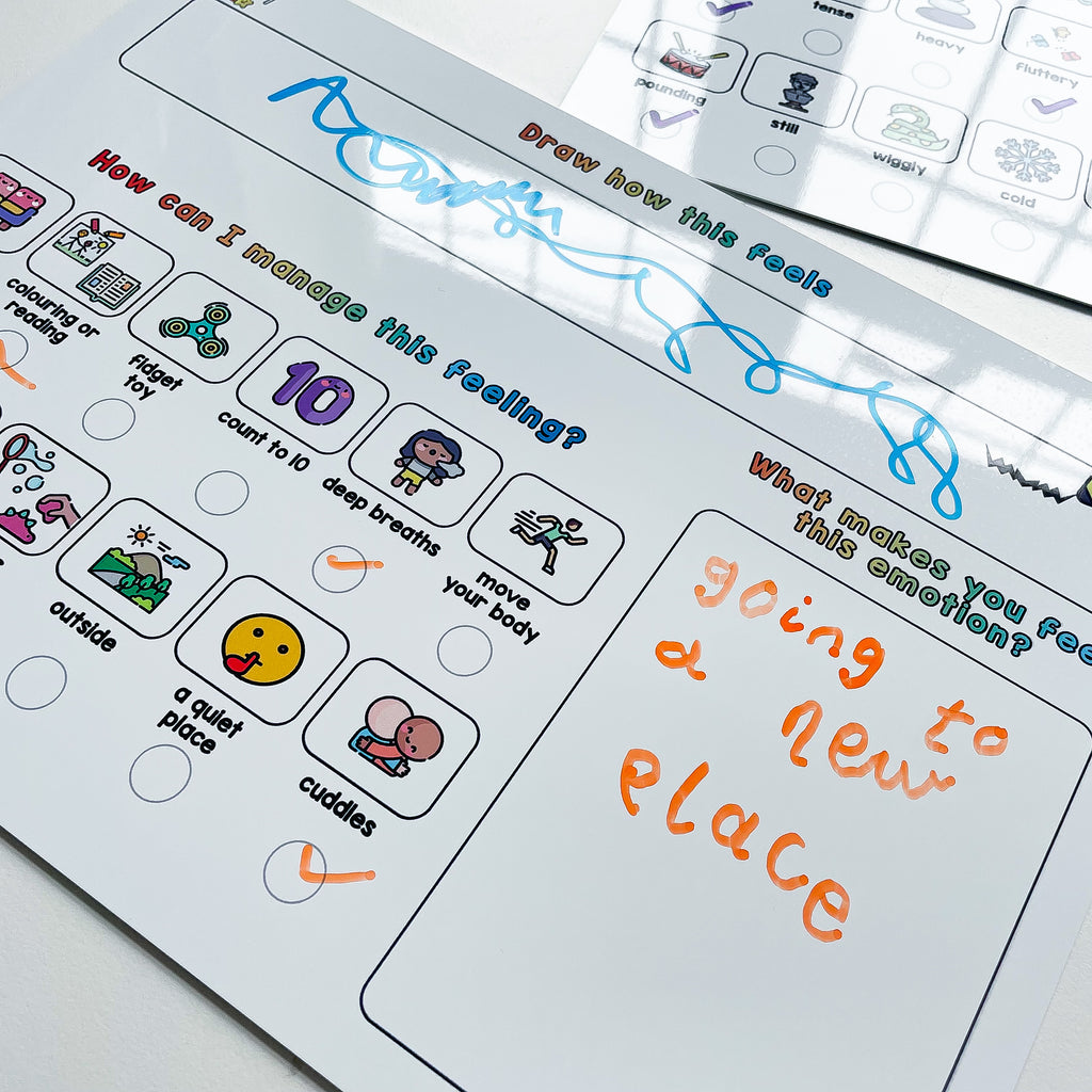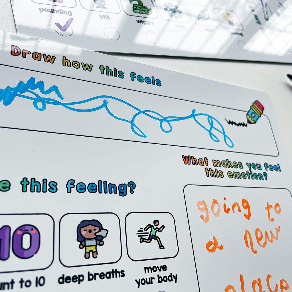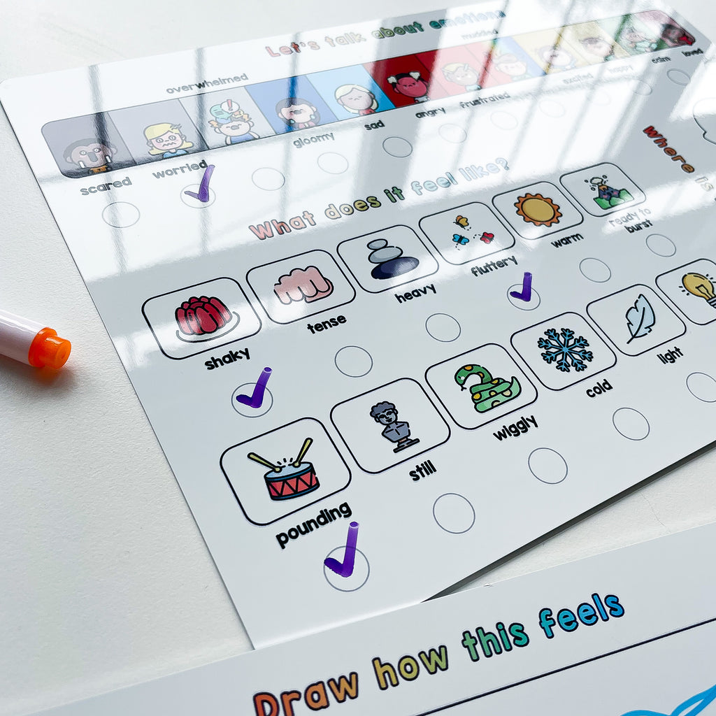 On the second whiteboard there's a creative activity to let your child draw this feeling. There's no right or wrong answer and it lets them express themselves in a different way.