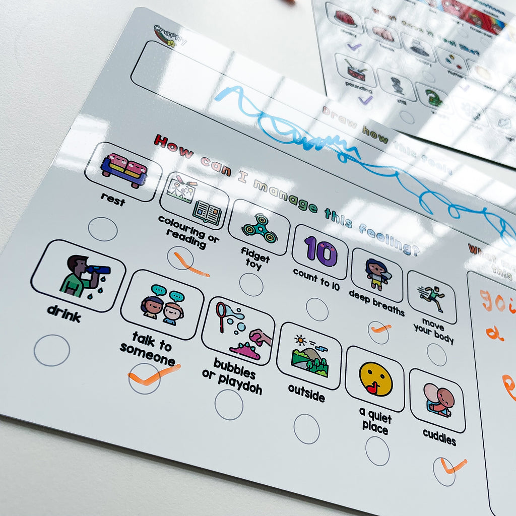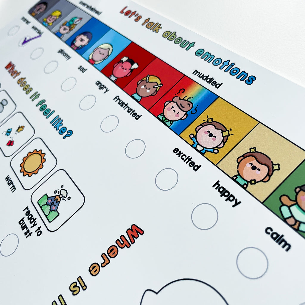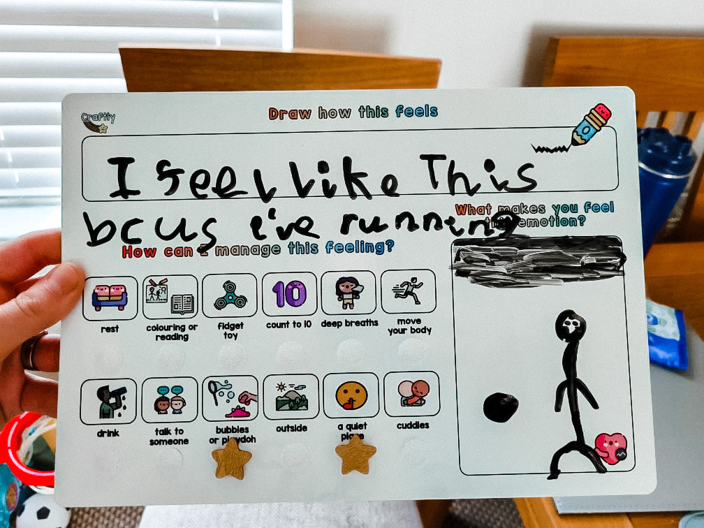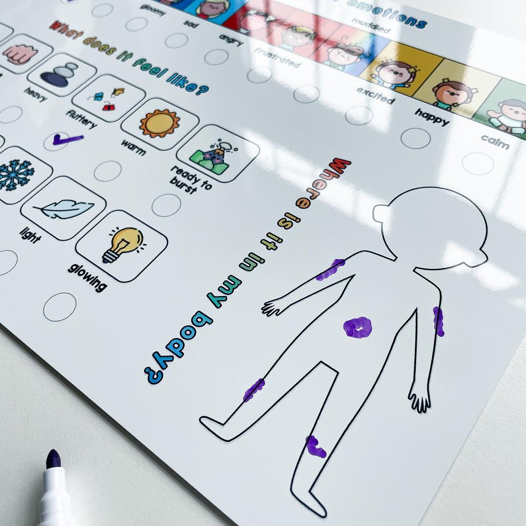 On the second whiteboard there's a creative activity to let your child draw this feeling. There's no right or wrong answer and it lets them express themselves in a different way.