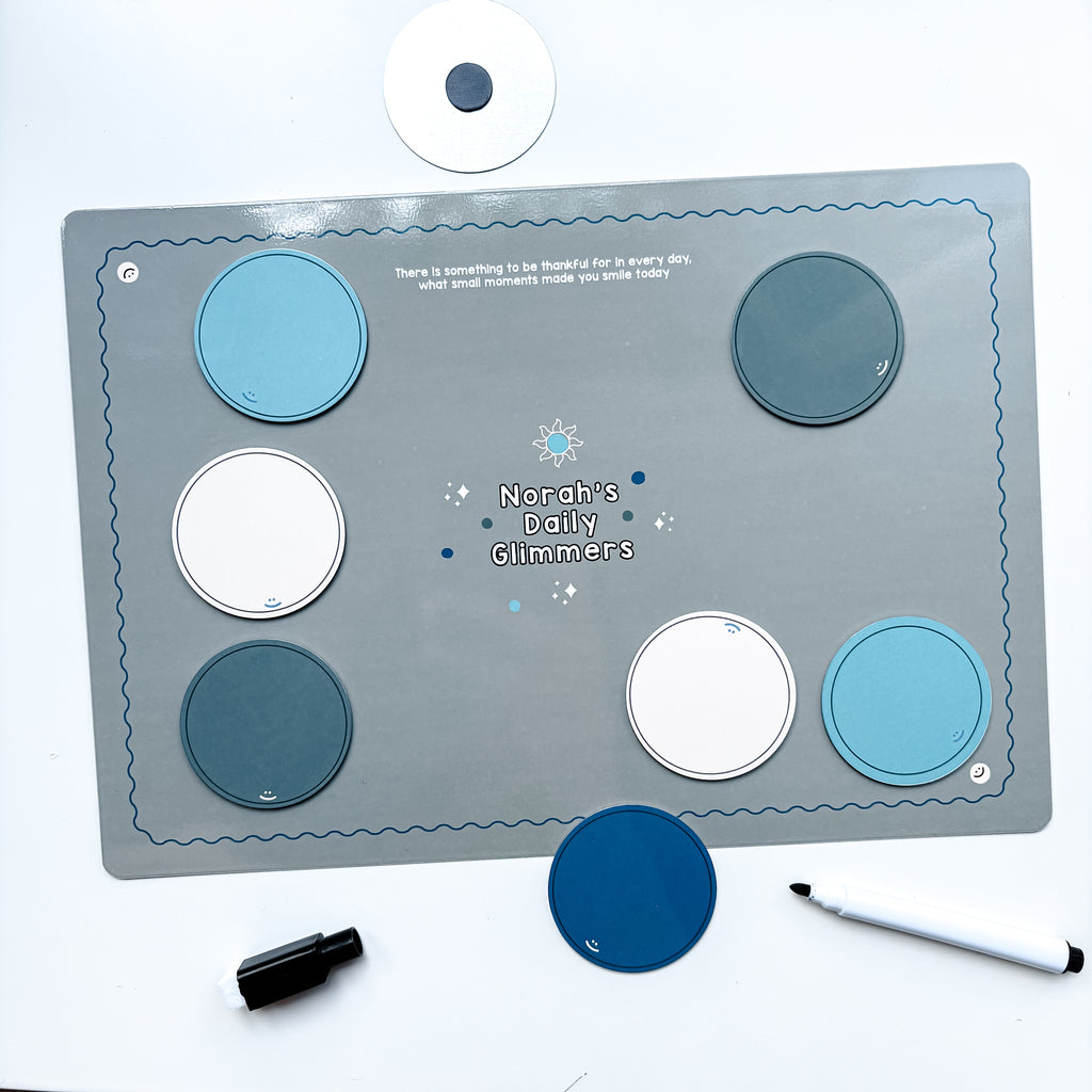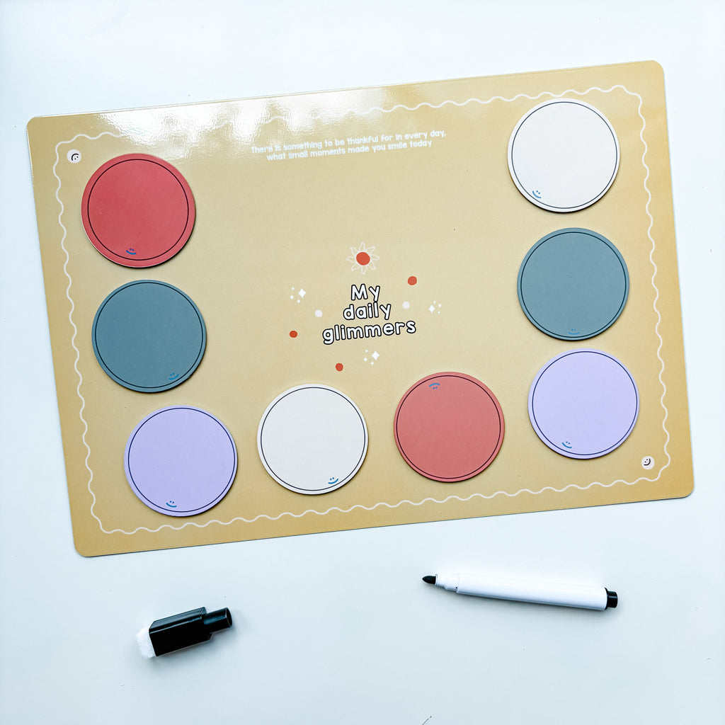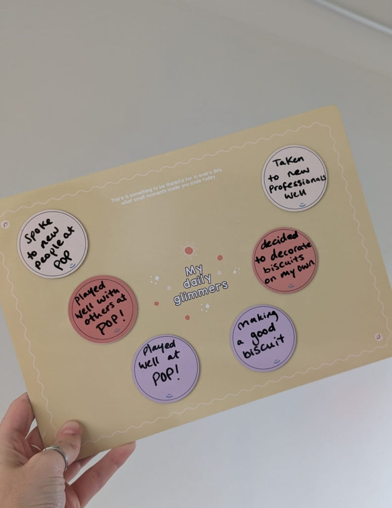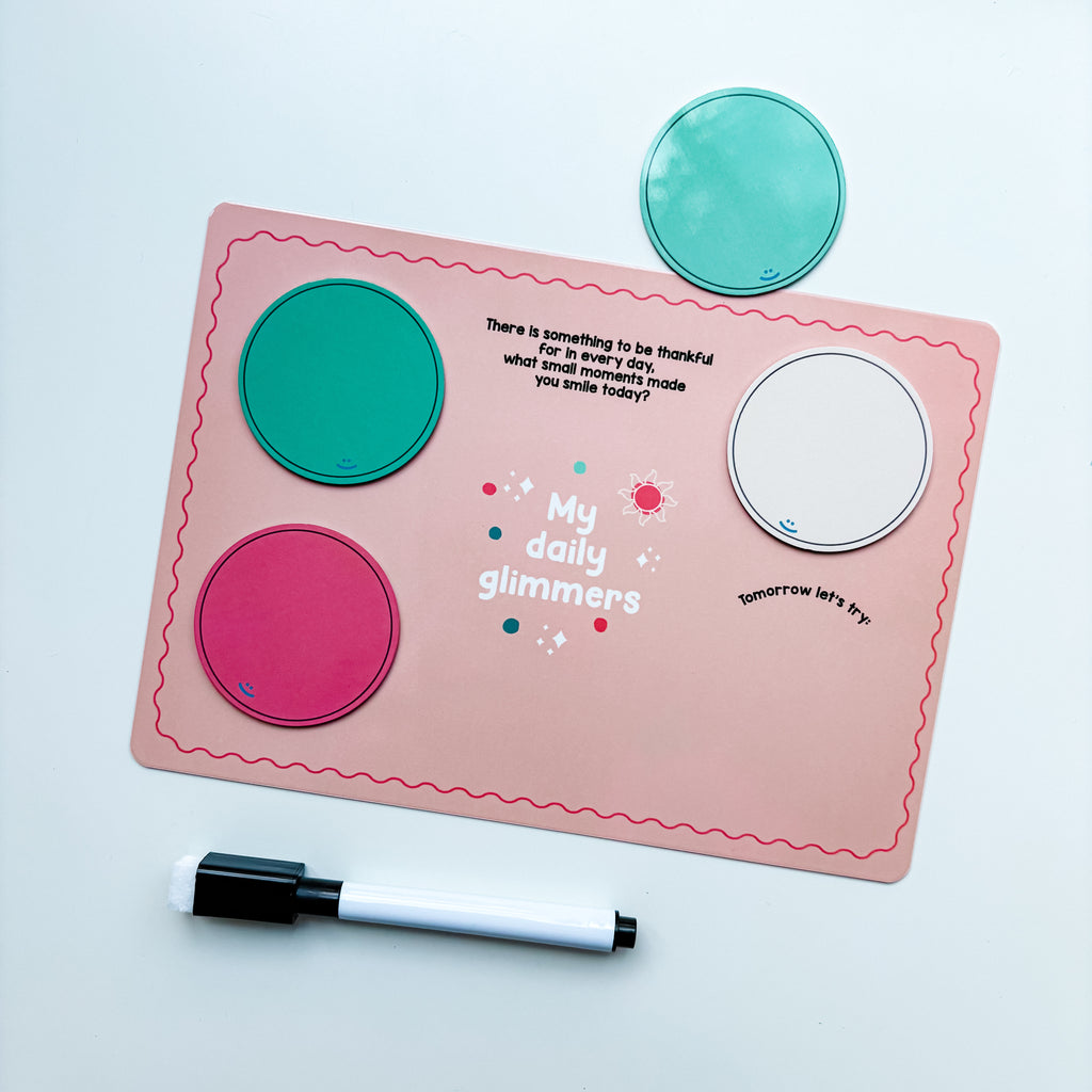 Designed for both adults and children, the Glimmers Board turns gratitude into a simple, joyful practice you can share as a family. Perfect for building mindful habits, encouraging kids to practise gratitude, or simply creating a moment of connection at the end of the day.