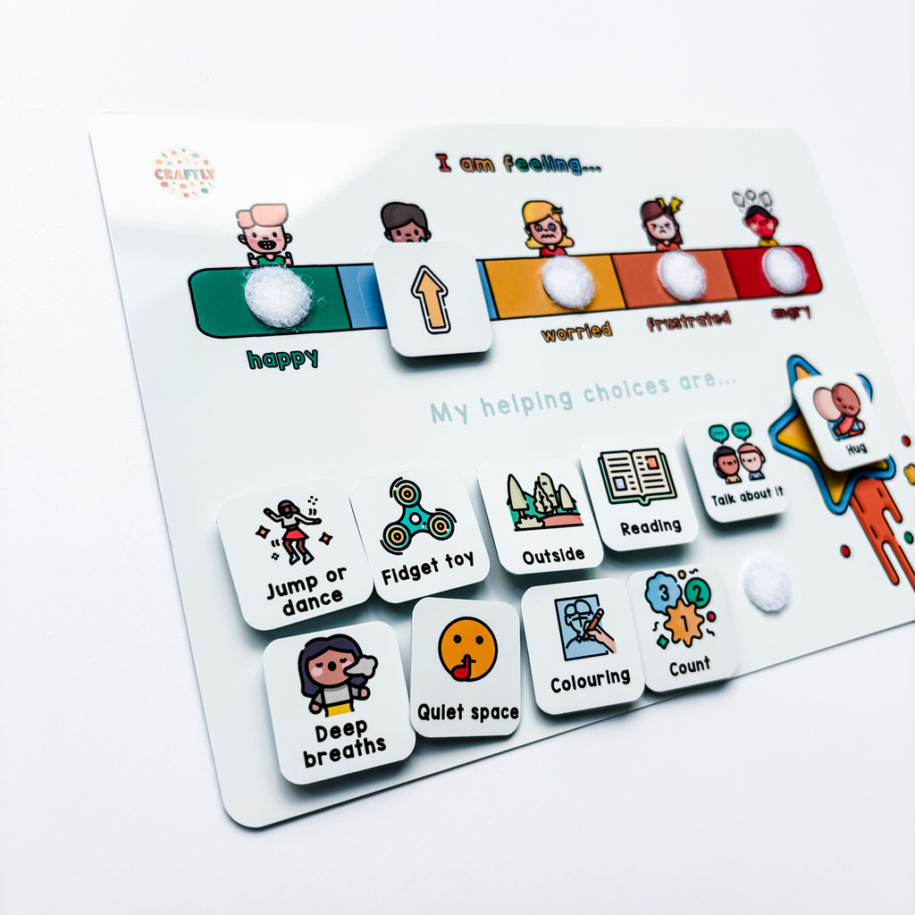 Recognising emotions and being able to label them is an invaluable tool for children. Use this smaller scale from happy to angry, to find out how you're feeling. You can then choose an option from the helping choices below to help with that emotion!