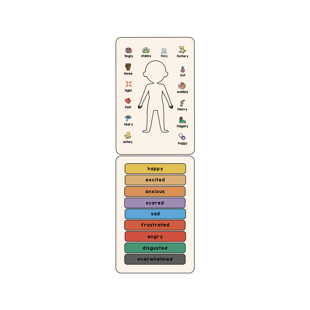 This compact, pocket sized interoception set is designed to help children and adults identify where they feel emotions in their bodies - wherever they are.