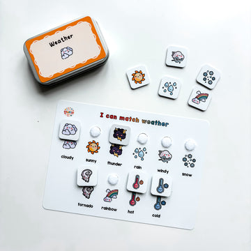 Discover endless learning possibilities with our Weather Matching Mat, part of the Learn & Grow range — a modular system designed to grow with your child. Start simple with picture matching, then unlock new skills as they’re ready, making this an essential resource for parents, teachers, and speech and language therapists alike. Our tokens are reusable across multiple boards, reducing clutter and maximising value!