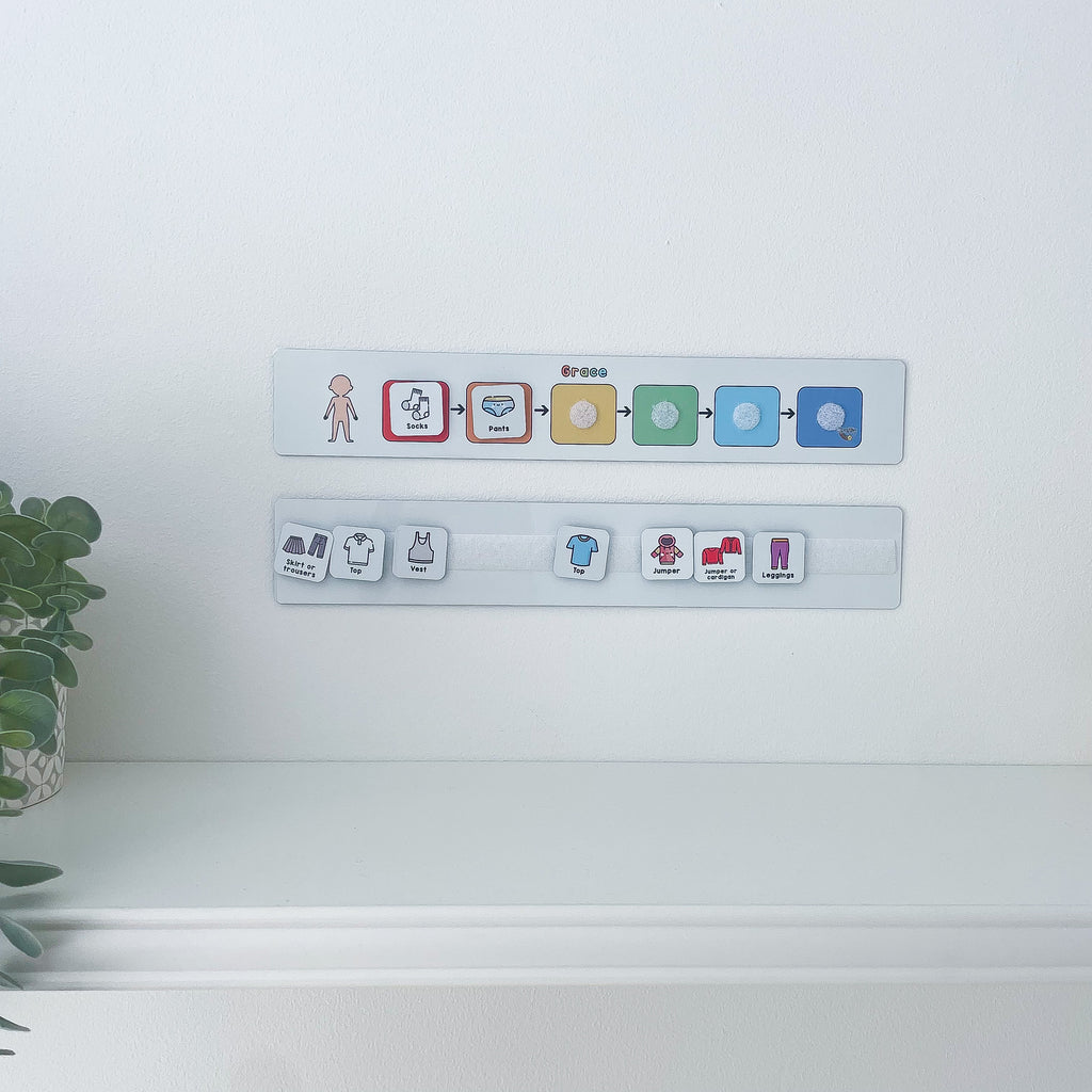 This visual getting dressed resource has been made to encourage children to be independent. It helps them to see step by step instructions to focus on the now and next aspect of their routine. With the interactive element of Velcro, you can move the tokens across when an action has been completed!