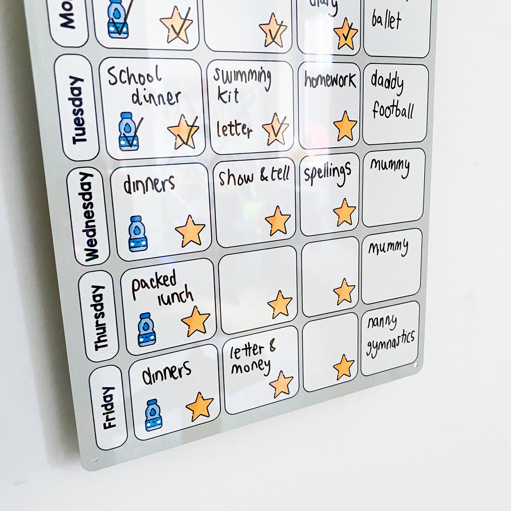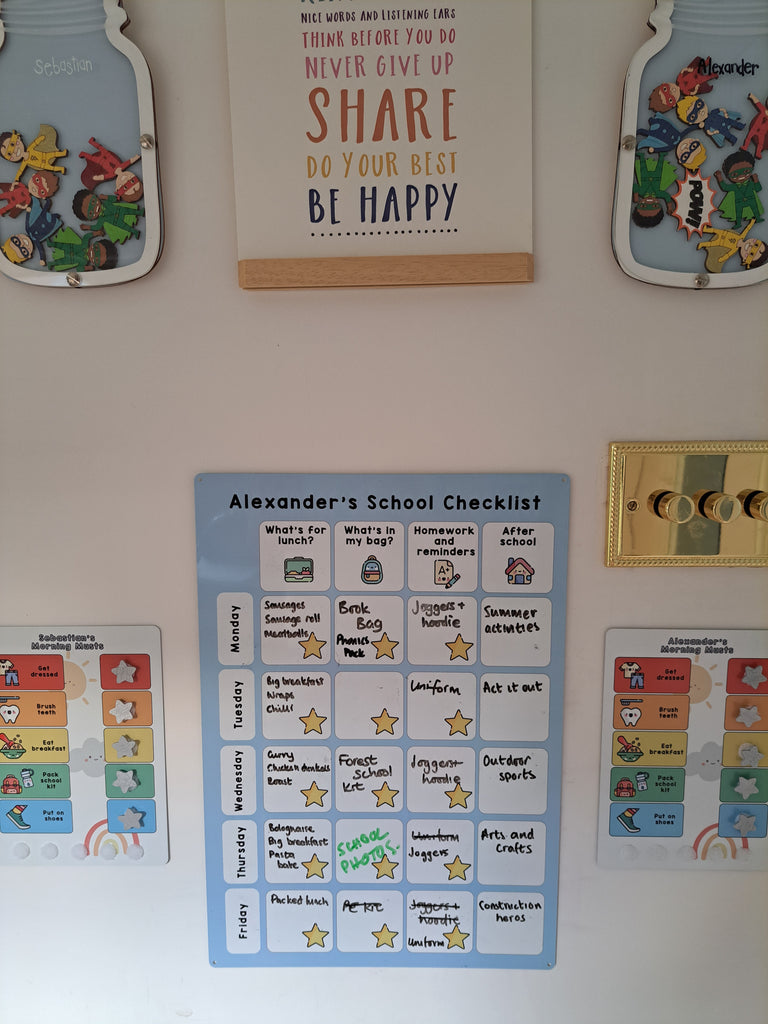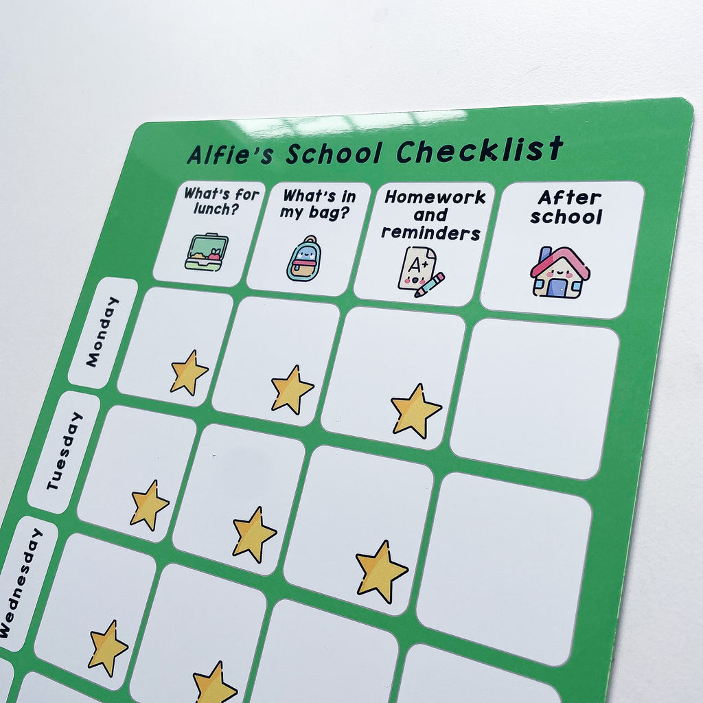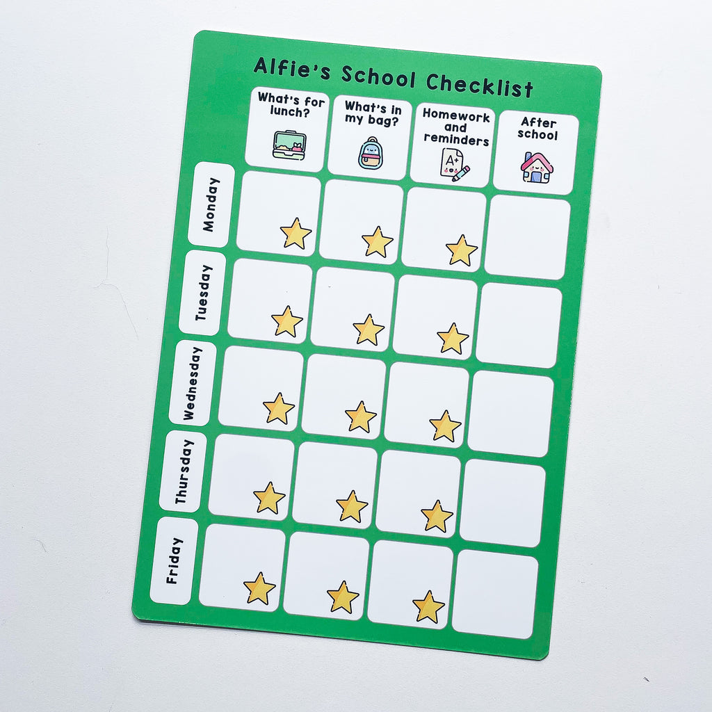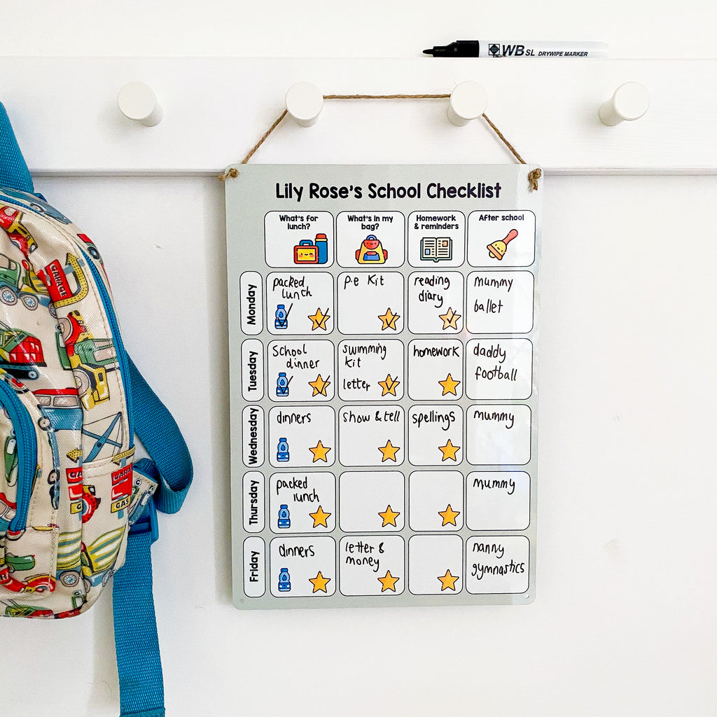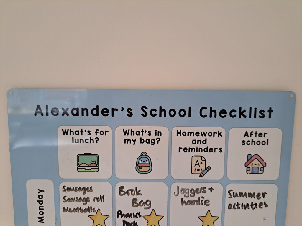 A beautifully designed dry wipe board to check off your child's reminders and things to pack for school.