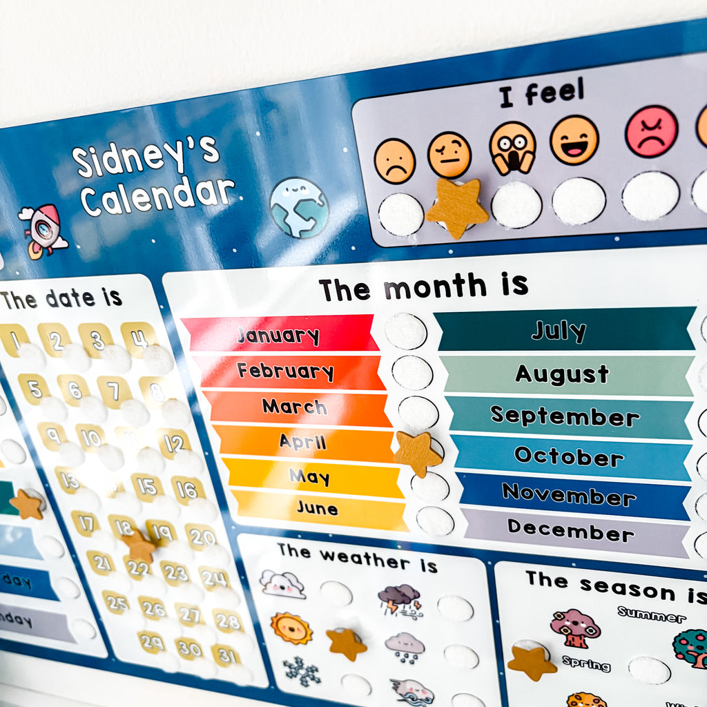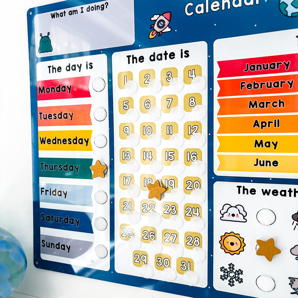 Make learning the days, dates, and seasons fun with our interactive children’s calendar and weather chart. A personalised, long-lasting gift that grows with your child. Designed to make daily routines engaging and fun.